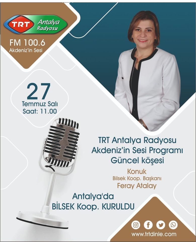 BİLSEK Kurucu Başkanı Feray Atalay, TRT Antalya Radyosu Akdeniz’in Sesi programına konuk oldu.